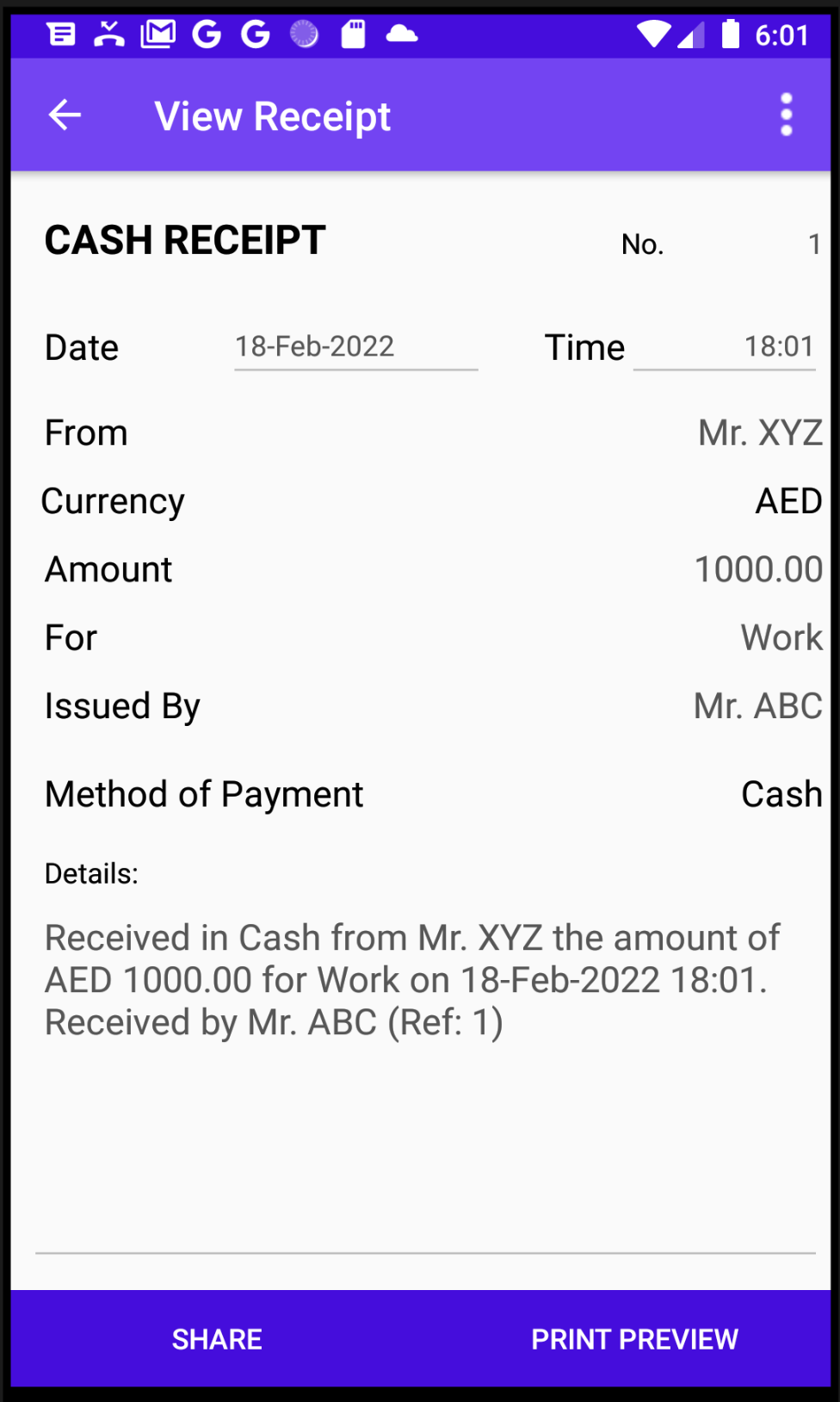 Cash Receipt Generator App helps you to generate receipts for your customers from your mobile phone in less that a minute.